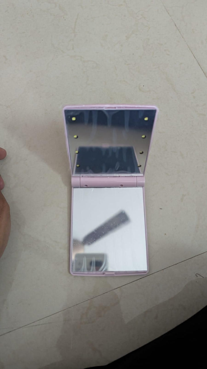 Product Name: Small portable Folding Makeup Mirror with led Lights for Women Girls at Travelling Outdoor,Handheld Compact Cosmetic Mirror- 1 Piece ( Multicolour)
